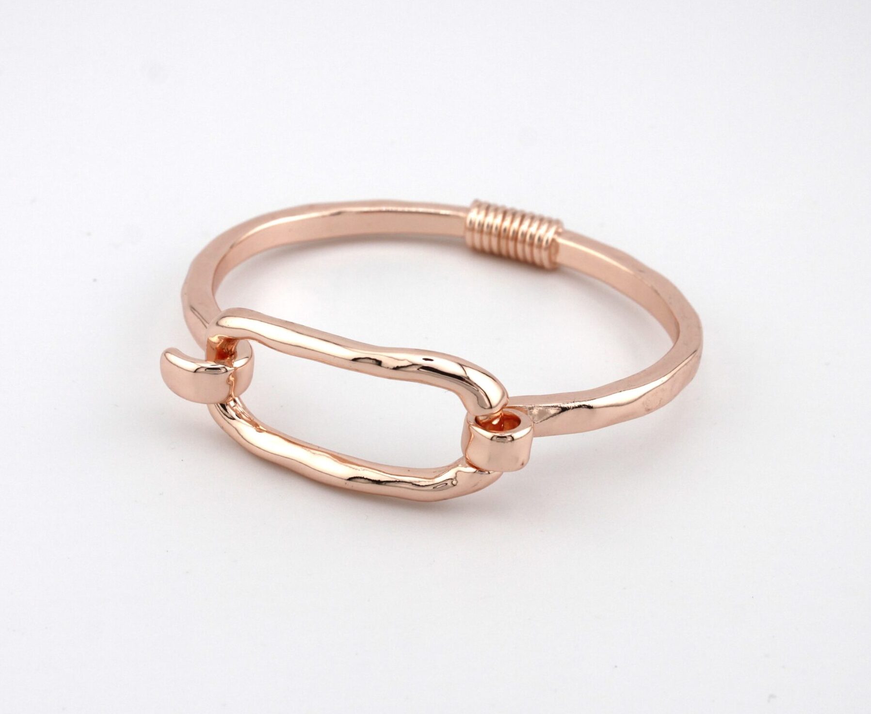 Solid bangle with hook opening in either Gold, Silver or Rose plating
